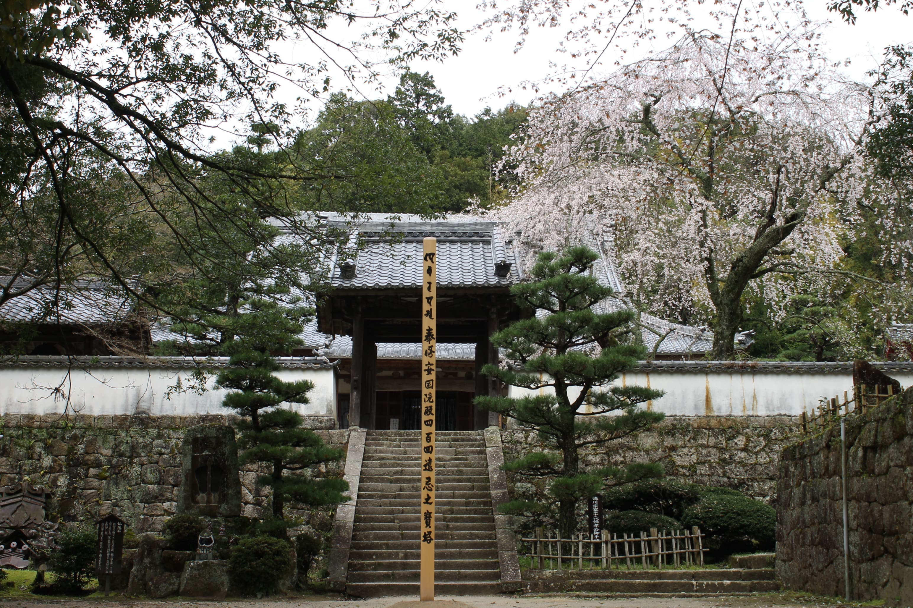 高月院 高月院はもとの名を「寂静寺」ともいい、寛立上人が在原信重(親氏の妻の父親)の援護を受けて1367年に建立したといわれます。高月院になったのは、親氏が1377年に本尊阿弥陀仏をはじめ堂・塔のすべてを寄進してからと伝えられます。 その後、家康から寺領100石が寄進され、明治維新まで時の将軍から厚い保護を受けてきました。境内には、松平家墓所があり、親氏、泰親、親忠夫人の墓が並んでいます。また、現在の山門や本堂は1641年に徳川家光によって建立され多くの文化財が残っています。 前のページへ 次のページへ